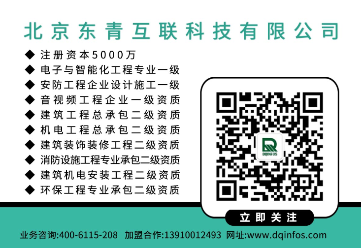 東青資質——注冊資本金5000萬,具有安防一級、音視頻工程一級、電子與建筑智能化二級、機房裝修二級、...